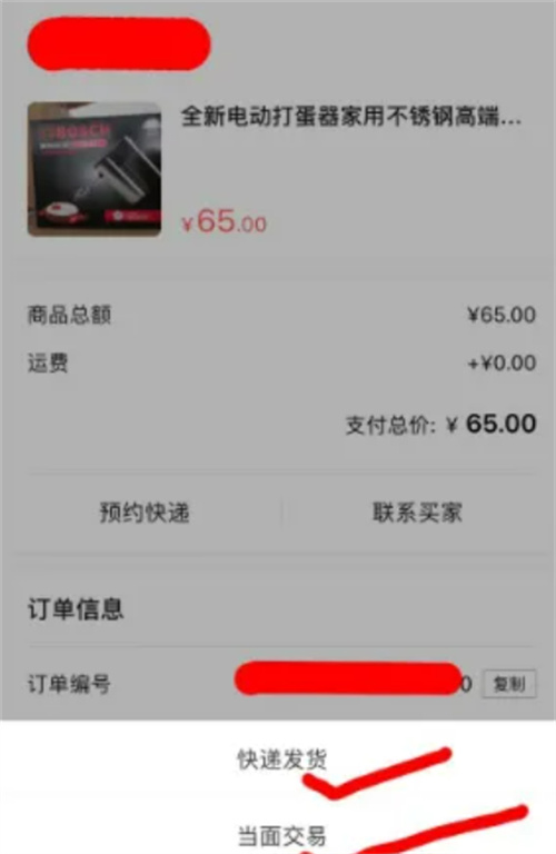 4选择发货方式,分两种方式,如果是当面交易或不需要寄快递就选择当面交易,如果通过寄快递就选择快递,下面我们以快递发货为例,点击快递发货。