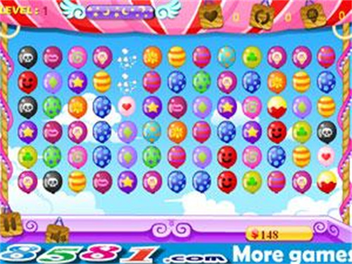 《气球连连看》是一款相同气球连接在一起就会消失并且得分的游戏。在这款游戏中玩家们会看到许多的气球在一起但是他们有着不同的颜色,玩家们通过交换方块使相同颜色的气球配对在一起就可以完成消除与得分。同时还有很多奇奇怪怪的道具,有爆炸气球等。