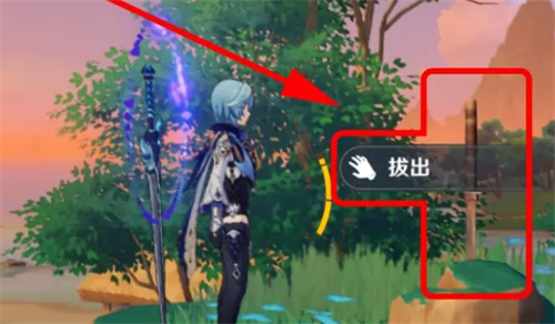 4、成功找到无名武士需要的刀以后,将它拔出来。