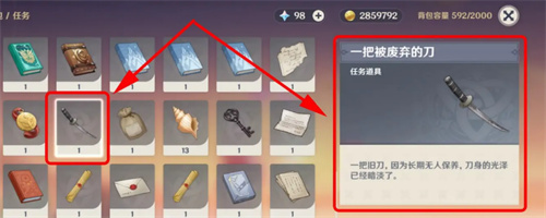5、这把刀的名字为一把被废弃的刀,将它给无名武士,就完成了。