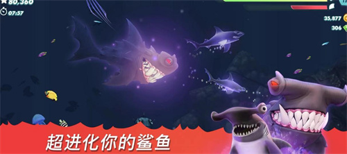 《饥饿鲨:进化》是一款真实刺激的海底生存游戏。玩家需要通过捕食其他海洋生物和收集资源来维持鲨鱼的生存,同时需要防止被人类猎杀和其他鲨鱼的攻击。游戏具有高度的自由度和挑战性,玩家可以在各种不同的海底环境中探索。同时,玩家可以通过升级鲨鱼属性、购买新装备来提高鲨鱼的生存能力。