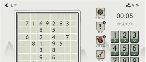 《汉字数独》是一款非常简约的国风数独类游戏,游戏的画面设计非常独特,是非常简约的国风水墨画界面,在进入游戏时玩家只需要根据提示进行操作即可。这款游戏的独特之处不仅在于玩家可以利用数字进行解谜,同时还可以认识到各种汉字。
