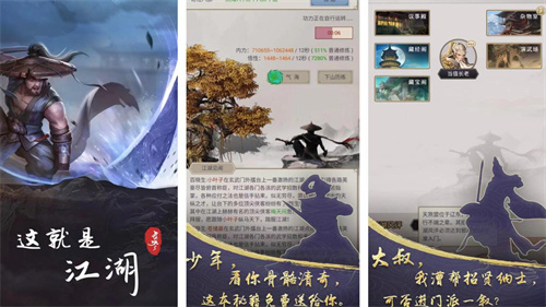 《这就算江湖》是一款独树一帜的开放式文字武侠游戏。玩家可以选择加入千百门派之一,每个门派都有着独特的武功技能和风格,让你尽情挑战不同的武侠路线。在江湖之中,你将结交各种有趣的角色,参与激烈的帮派争斗,揭开一个个令人震撼的故事。文字玩法是游戏的主要交互方式,每个决策都将影响你的江湖地位和命运。