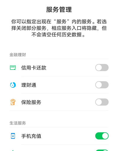 5. 最后在进入的页面里就会看到很多服务选项了,在每个程序后面都会有一个开关按钮,在想要添加的程序后面点击按钮设置为开启,就能把它添加到微信服务页面里。不想使用哪个程序就在它的后面点击按钮进行关闭即可。