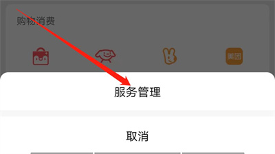 4. 这时页面底部会弹出一个窗口菜单,在里面点击选择“服务管理”这一项。
