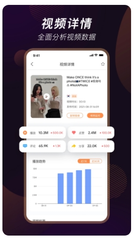1. 对每一个视频都会直接进行数据的分析。通过数据来更加直观的看到当前视频的流量情况,将所打开的视频直接分享给所需要类似内容的用户。