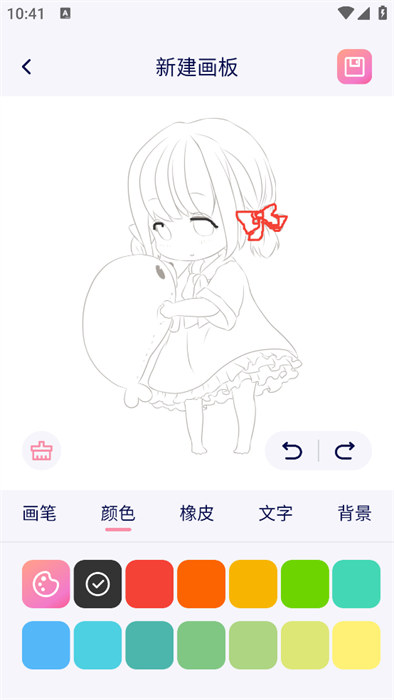 3、点击自己想要的绘画模版就能进行绘制的操作,还能挑选自己想要的颜色;