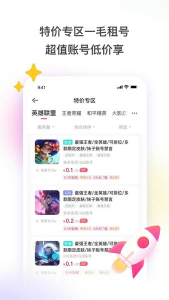 提供当下热门游戏(王者、lol、和平精英等)、火爆新游的账号出租
