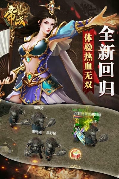 帝战手机版是热血传奇类的2DMMOrpg手游.简单而不失微秒的游戏操作,完美的职业搭配,不可替代的PK感受,行会战争等群战体系,让帝战拥有了独一无二的经典魅力!好友、组队、行会等丰富的社会架构,更让玩家在兄弟中冲锋体验人生百味。