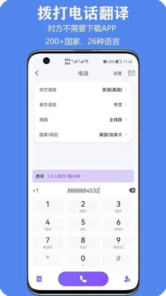 【电话翻译】拨打电话、接听电话实时翻译;接听方手机上不需要安装APP;