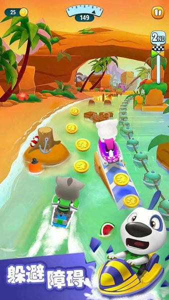 快来和会说话的汤姆猫家族一起参加摩托艇比赛!探索热带岛屿,与对手一决高下。躲避障碍物并收集所有金币!驾驶自己定制的摩托艇飞驰,建造完美的海滨别墅。还在等什么?赶快加入超有趣的比赛吧