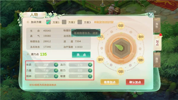 法力:增加法力点数可提高法术攻击、治疗强度、真气上限和些许速度