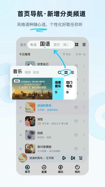 海量曲库/智能推荐:根据听歌偏好推送歌单与歌手,新歌热曲先听为快。