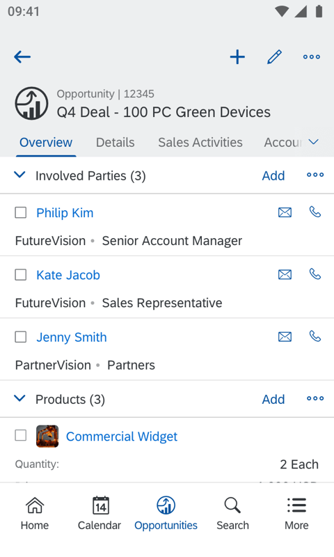 此应用访问 SAP Cloud for Customer 解决方案,允许销售人员通过其设备与团队进行协作、与业务网络更好地沟通以及制定知情决策。