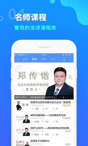 点睛网是一款专门为法律知识分享所设计的app,用户通过点睛网可以在线学习海量正规法律知识,课程是由专业的法律学名师在线授课,还有大量精彩课程任你选择,让你随时随地学法,快来试试吧!