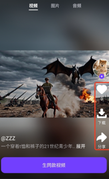 5、在灵感广场中可以点赞收藏其他用户发布的内容,还可以一键制作同款。