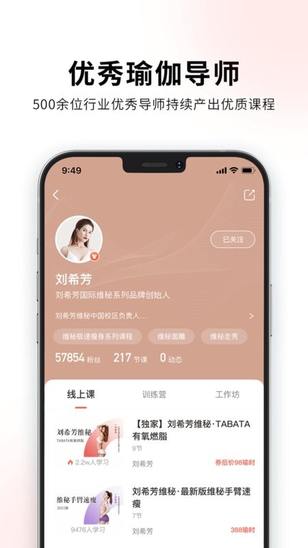目前已经有200位国内外顶尖瑜伽导师入驻随心瑜大学app,通过在线直播的方式传授最专业、最系统的瑜伽知识,从而帮助100万+人次瑜伽教练和习练者提升自己的专业水平。