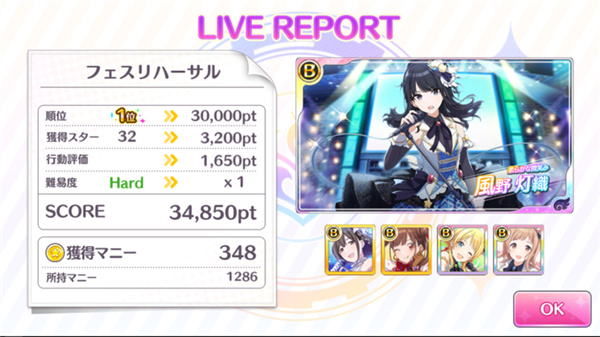 Festival结束后会视乎排名、表现、难易度等获得マニ�`金币