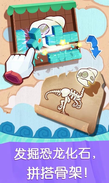 化石收集,让宝宝不断地收集恐龙化石,然后进行搭建骨架;