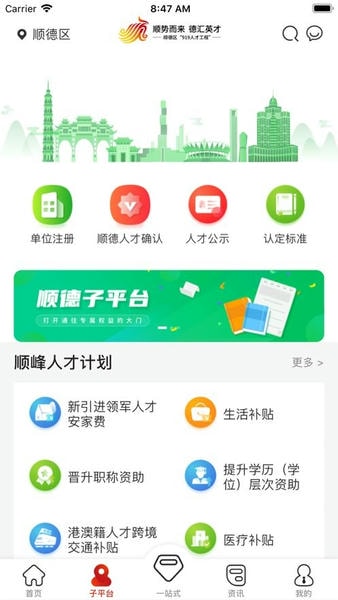 是佛山市人力资源和社会保障局指定唯一的佛山人才移动服务客户端。面向全市各类人才提供人才分类认定、人才扶持政策申请发放、优粤佛山卡申领、人才咨询、人才专属服务等功能,随着平台不停地完善,平台向人才提供“政务+创业+医疗+住房+商旅+联谊”六位一体全面贴心的服务。