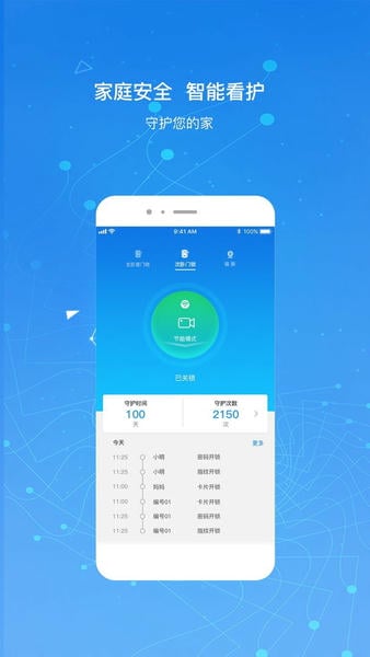 --可以远程开启智能锁的智能看护功能,能够对全屋进行布防;