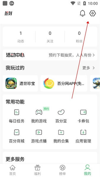 1、首先我们进入到百分网游戏盒的“我的”板块中,点击“设置”;