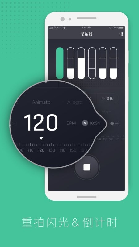 节拍器节奏训练是专业的电子节拍器,适用于吉他、钢琴、架子鼓、尤克里里等乐曲节拍训练使用。支持8种音色模式。帮助您轻松学习节拍节奏,初学者入门和专业进阶训练同样适用。