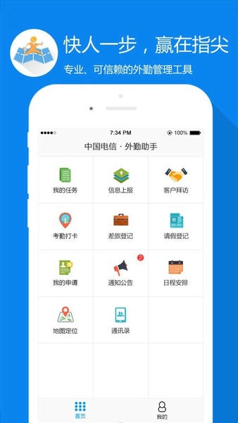 外勤助手是中国电信官方打造的外勤管理软件,支持员工工作上报、考勤签到、客户拜访、实时任务获取等多种操作,对于提升工作效率非常有帮助。外勤助手可以节省企业运营成本,欢迎下载使用。