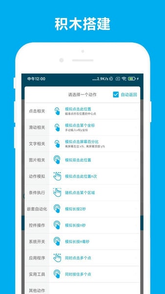 也可以借助这款工具实现更多有趣的功能,如:模拟点击游戏或广告界面,app自动化测试,辅助老人或小孩快速使用手机功能,定时执行用户设定的功能等。