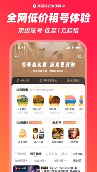 支持以低门槛租用顶级账号,满足短期上分、活动体验、皮肤体验、阵容尝鲜等需求。配合“1元起租”“一键上号”“不满意秒退款”等机制,提升租用的性价比与可控性。