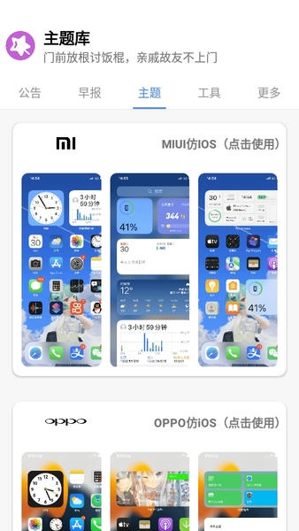 专为用户们提供丰富的手机装饰与系统工具软件,包括各种动画特效、安卓仿ios小组件、鬼畜音效以及各种趣味图片工具等等都能在这里看到,非常精彩丰富,绝对不错过任何一个特色工具,非常好用,能够为广大用户们提供便利的手机系统装扮,打造不一样的视觉效果,各种diy自定义都在这里看得到。