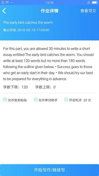 对英语作文进行批改的教学辅助工具,老师可以通过该软件为学生们发布作业和评改,达到教育巩固的作用,学生也能自主进行学习与练习,加深知识的印象。