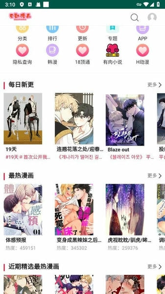 智能搜索排序:可按关键词、作者、体裁等搜索漫画。