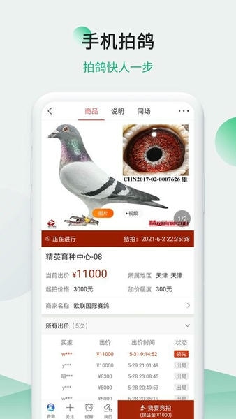掌上拍鸽不再是梦!鸽具、鸽粮、鸽药应有尽有,想买就买;铭鸽、赛绩鸽、种鸽数不胜数,想拍就拍,支持多渠道支付充值。