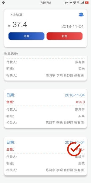 -适合一个公司或者是合租这种场合使用,虽然一个消费的项目是一个人付钱但是多人使用的,可以定期的进行结算,支持账单的结算以及关系人的添加;