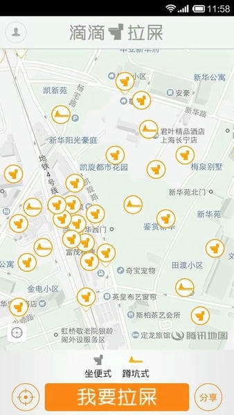 -让我们在旅游的时候不用在担心找不到厕所了,可以直接使用滴滴拉屎找到我们最近的厕所。