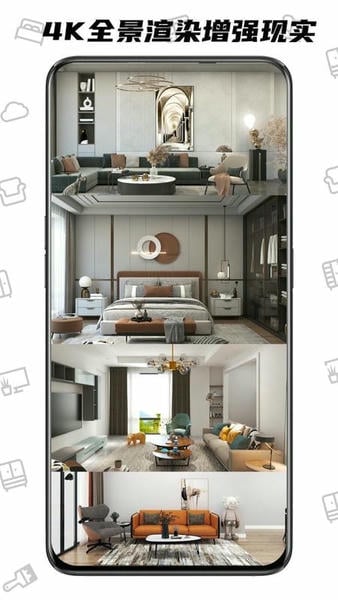 【装修效果图】App内支持极速三维摆放,快速高清渲染,真实房型尺寸,一键渲染效果图和全景图,鸟瞰图,漫游图;