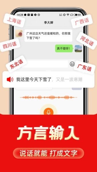 方言识别输入。支持多种地方方言语音识别。