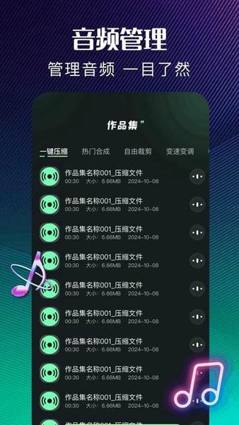 3、音频压缩:轻松一键可将音频音乐进行压缩,便捷传输与减轻存储空间;