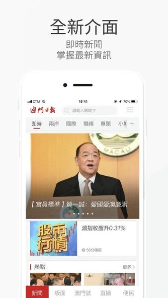 澳门日报是一款为澳门打造的日报新闻软件,大家在这里可以看到最新的澳门新闻报道,覆盖澳门方方面面最新消息,是所有新闻关注者必备软件.