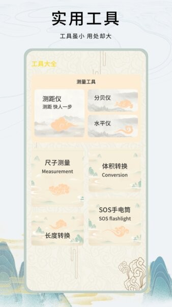 除了基本的方位测量,软件配备测距仪、分贝仪、水平仪等多种测量工具,满足用户多样化的使用需求。无论是家装测量还是户外环境检测,这些实用工具都易于操作,且集成于同一界面,提升了工具的系统性和便捷性。模块间切换流畅,增强了整体使用体验。