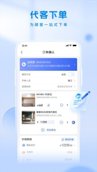 在APP内点击“代客下单”入口,输入客户详细信息和商品参数,确认无误后提交订单,实现快速便捷的客户订单录入和管理。