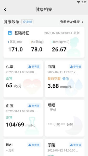 数智家医app是近几年热度较高的家庭健康管理平台,利用此软件大家不仅能看到自己的健康数据,同时也能掌握家庭亲友们的健康信息哦,像个人实时身高体重、心率、血压学糖等数值都能在上面看到,另外它还支持用户在线查体验报告!