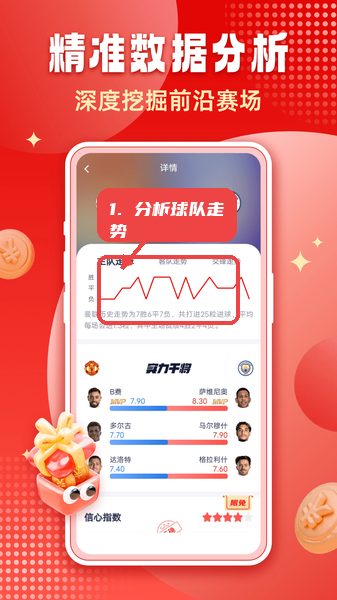 利用大数据技术对球队和比赛进行深入分析,包括球队走势、球员表现和信心指数,辅助用户科学判断。