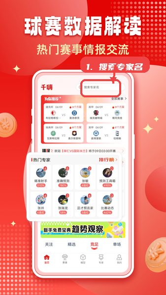 在首页的搜索框中直接输入感兴趣的专家名称,快速找到该专家的赛事分析和预测内容,便于获取权威解读。