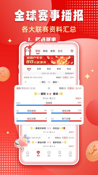 为了提升新用户的使用体验,千嗨体育设置了80元优惠券的专享福利,这不仅体现了对新用户的欢迎,也鼓励用户更深入地参与赛事分析和数据研究。