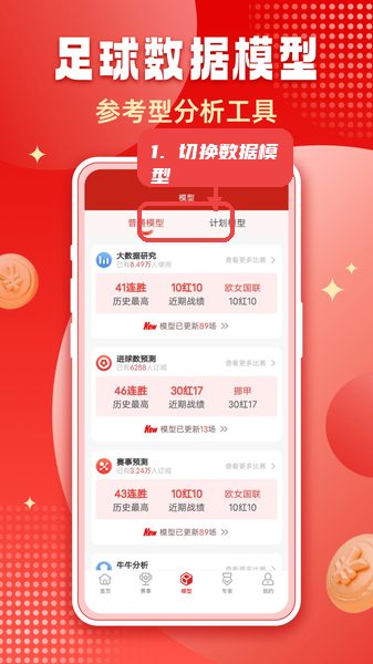 内置多种分析模型,支持用户查看不同模型下的比赛预测结果,满足多样化的预测需求。