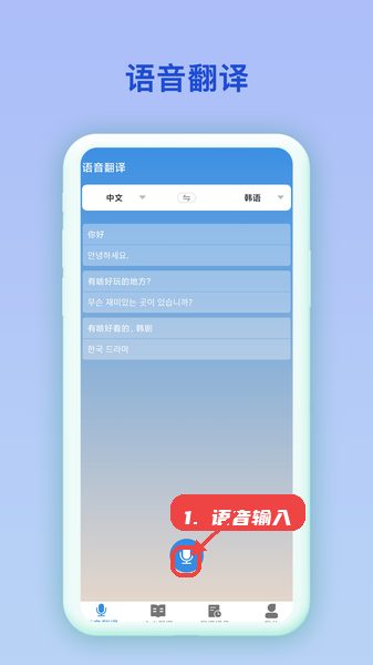 点击应用底部中央的语音输入按钮,说出需要翻译的内容,系统会自动将语音转为文字并完成中韩互译,适合即时对话环境。