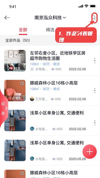第二步,作品列表搜索与管理。