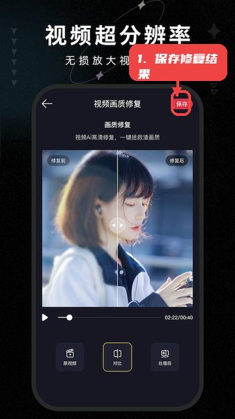 修复完成后,可以通过对比画面查看效果变化,确认满意后点击“保存”按钮将处理后的视频或图片存入本地,方便后续使用。